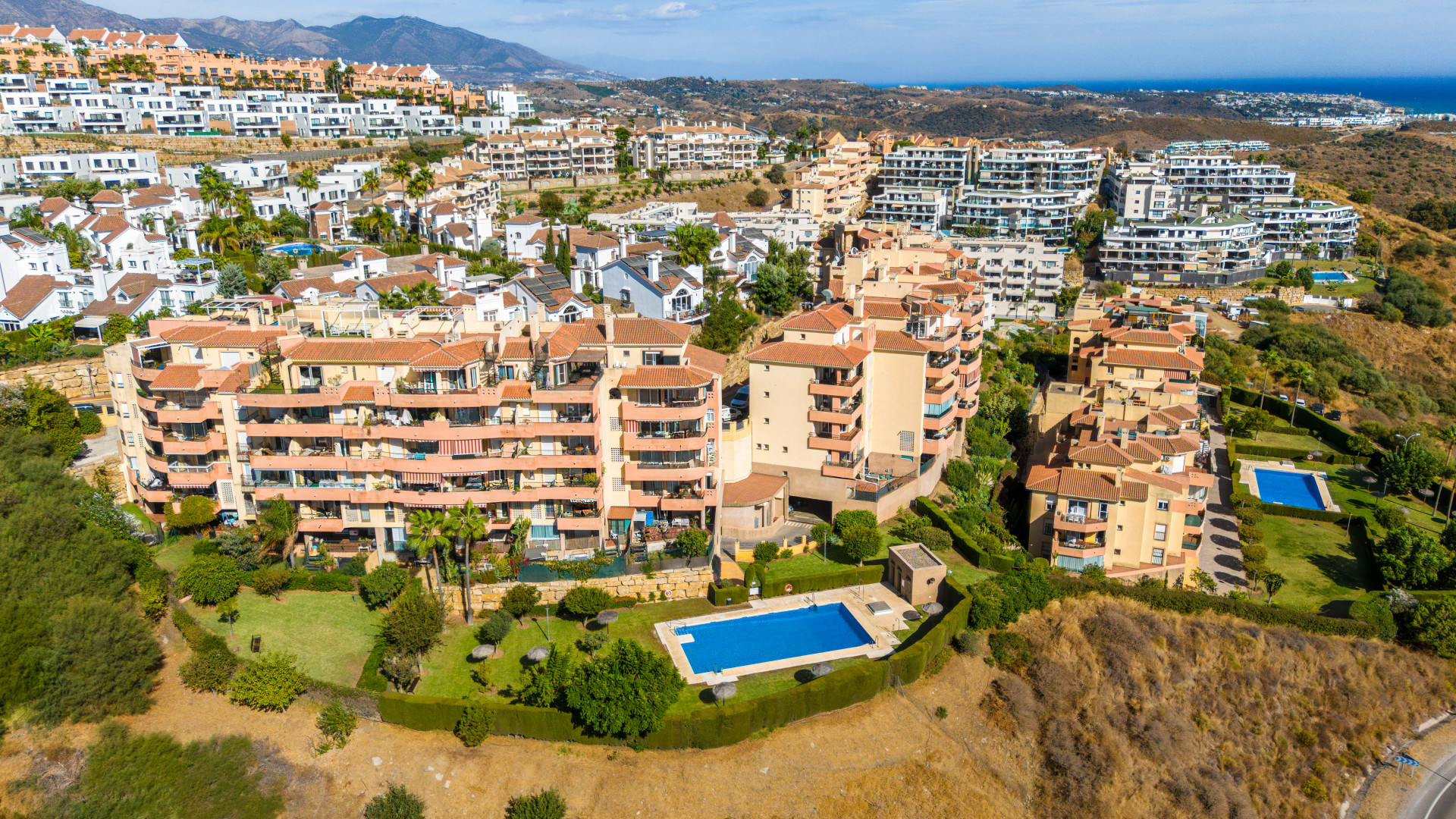 Impeccable, south-facing two-bedroom apartment, located in the gated community of Terrazas del Sol, Mijas Costa